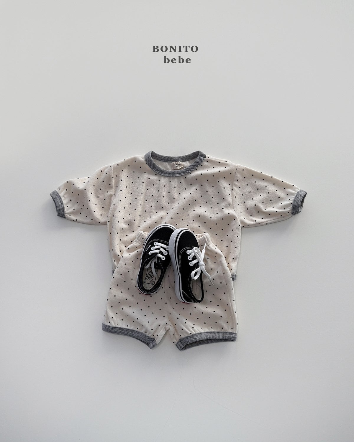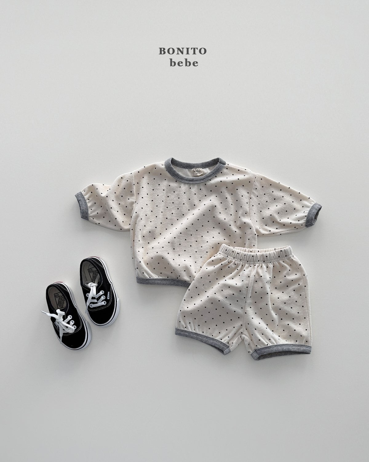 さりげないドットパターンが愛らしいベベ上下セット